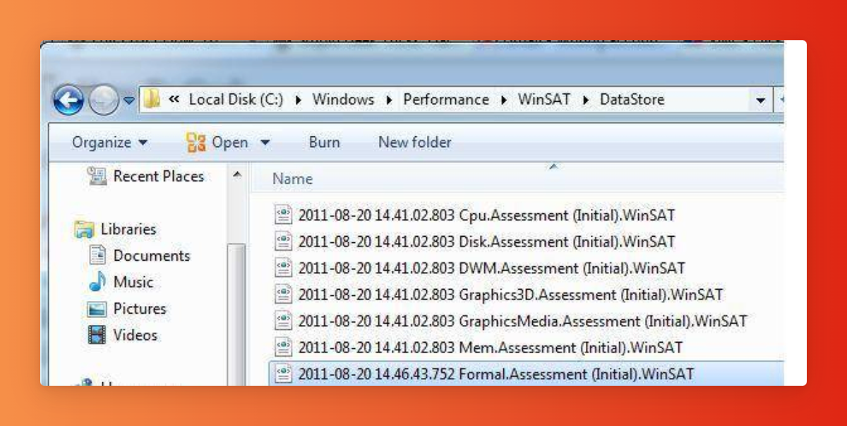 Потом в папке «Performance» найти «WinSAT», в котором войти в каталог «DataStore»;