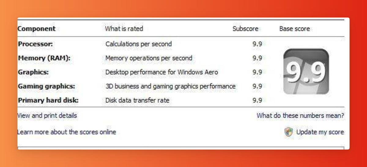 Впервые появилась она в Windows Vista, где выполняла расчет оценки производительности аппаратных составляющих компьютера.