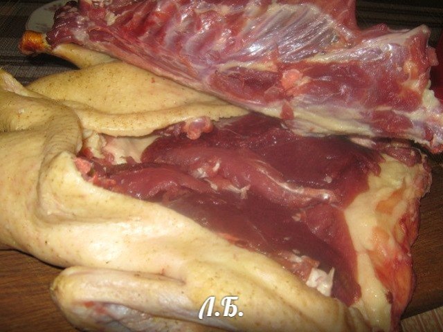 Фарш утиный в домашних условиях . . . то утиное мясо мы снимаем непосредственно с тушки . А потом фаршируем утиную кожицу и запечем . Запекать будем 2 часа при температуре 200 градусов . . .