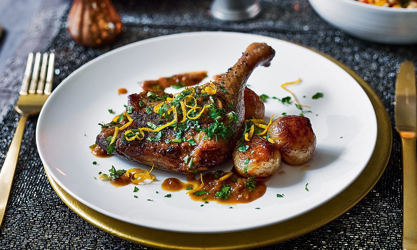 Утка в пиве запеченная в духовке с яблоком и апельсином