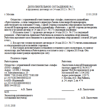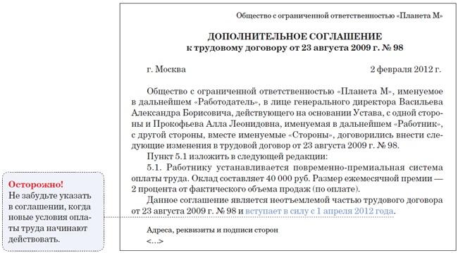 Уведомление о доп соглашении