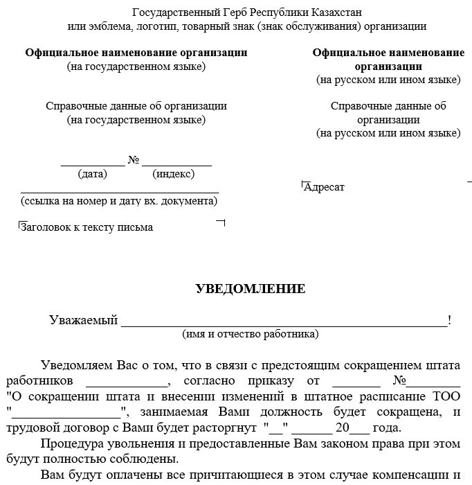 Уведомление о сокращении образец 2025
