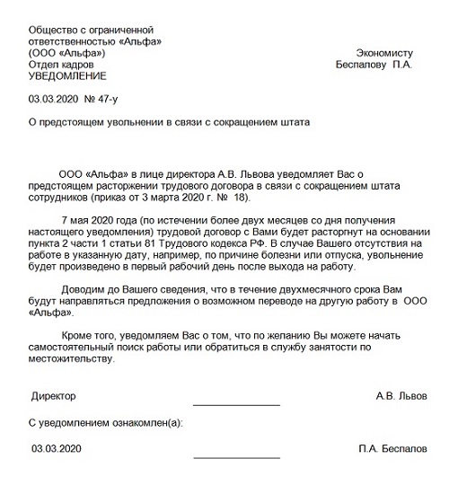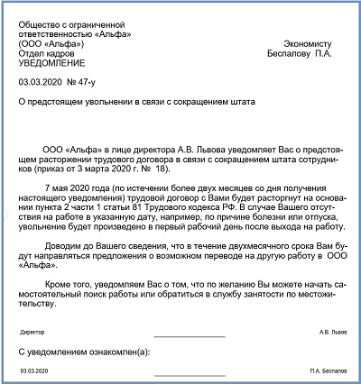 Уведомление о сокращении образец 2025 143 фото