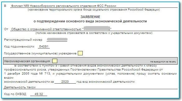 Уведомление о видах деятельности в фсс