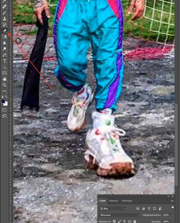 Выбираем слой с ботинком, выбираем резинку, и аккуратно стираем все лишнее