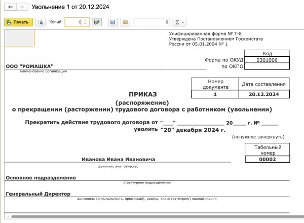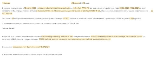 Увольнение 1 числа месяца
