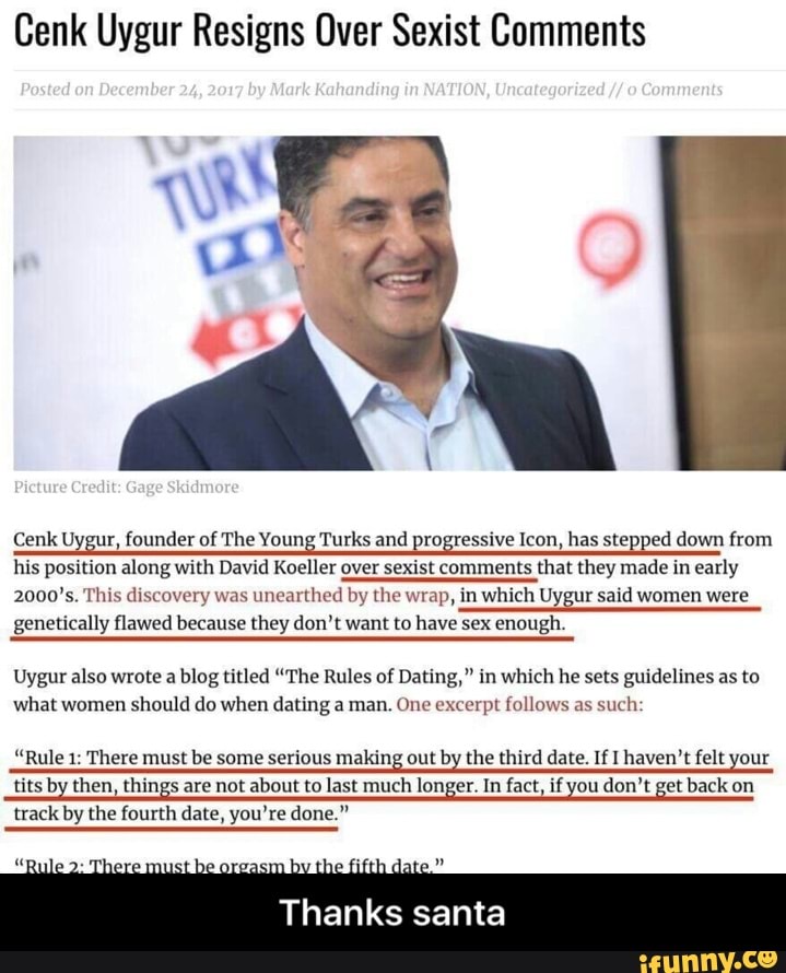 In one such post from the early 2000s, which Uygur has since denounced, the host laid out "rules" for women on the dating sense . "There are some hard and fast rules of dating . Women, ignore these at your peril," Uygur wrote in his early thirties . "Rule 1: There must be some serious making out by the third date," he posted .