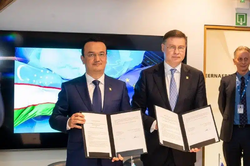 От Узбекистана документ подписал министр инвестиций, промышленности и торговли Лазиз Кудратов, от ЕС — исполнительный вице-президент Еврокомиссии, комиссар по торговле Валдис Домбровскис.