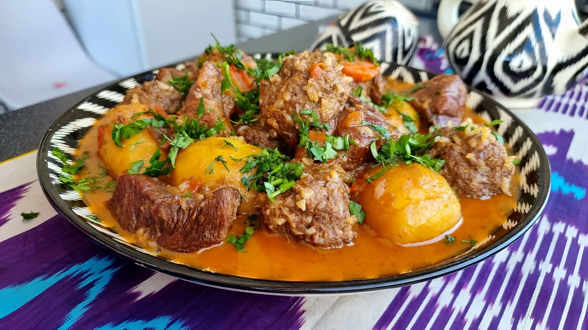 Узбекское блюдо с картошкой и мясом