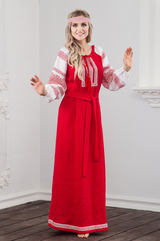 Платья в русском стиле (65 фото): штапельные, современные ...