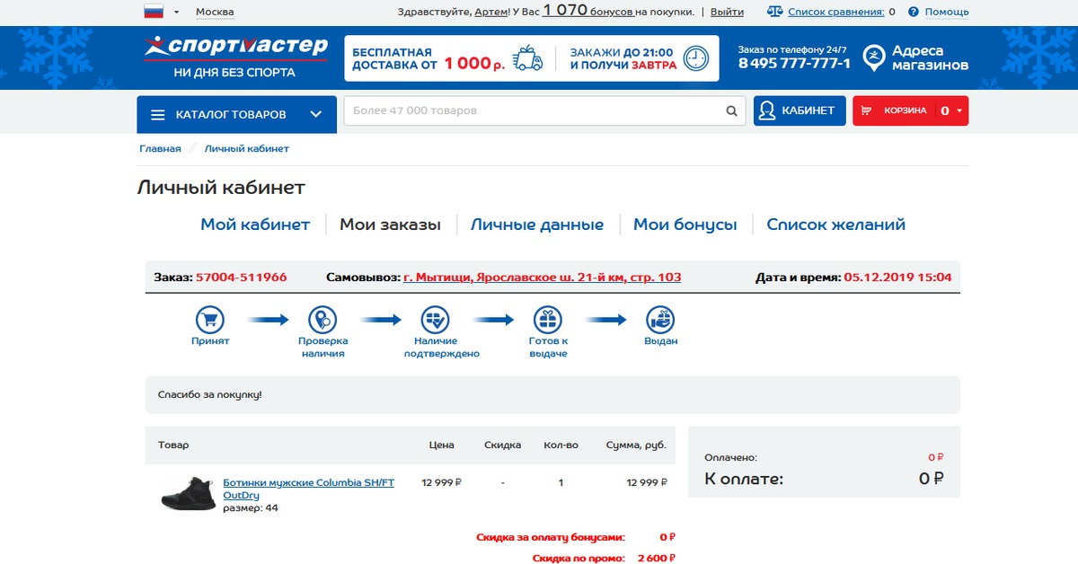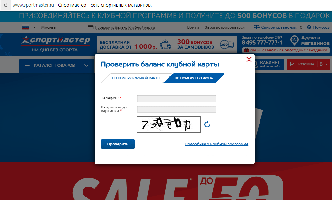 Узнать баланс карты спортмастера