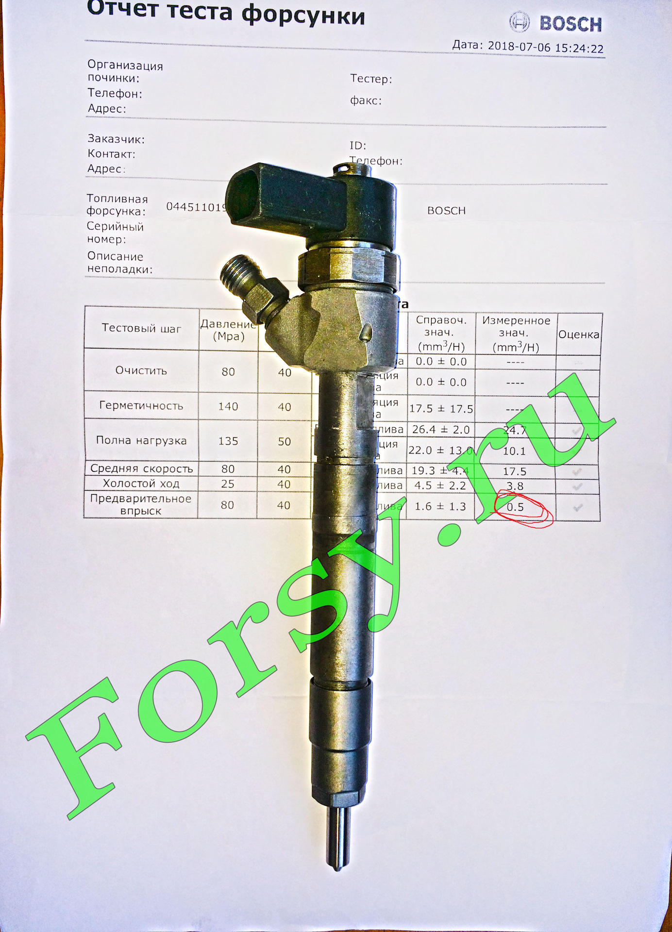 Узнать номер форсунки