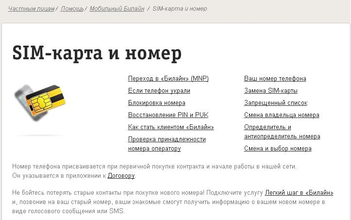 Узнать тел билайна
