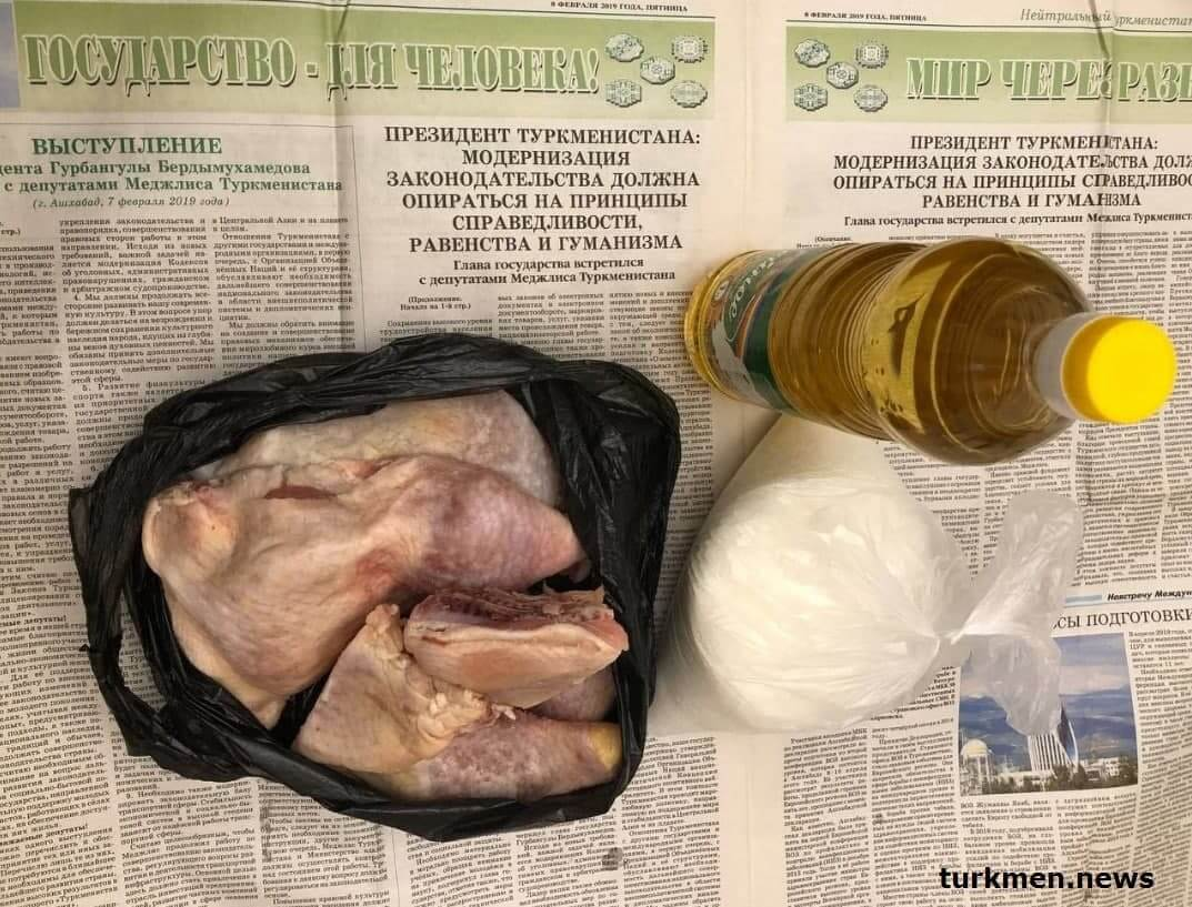Тем временем отдельные жители Ашхабада неожиданно получили в пайке не куриные окорочка, которые уже много лет входят в субсидированную продуктовую корзину по всей стране, а целую курицу.