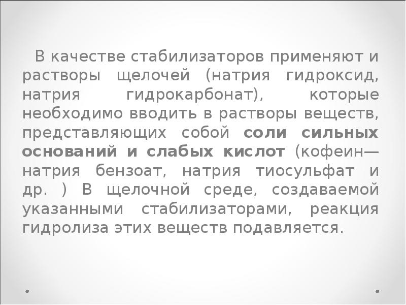 В качестве стабилизатора для инъекционных растворов кофеина-бензоата натрия используют . 0,1 М раствор натрия гидроксида; натрия гидрокарбонат