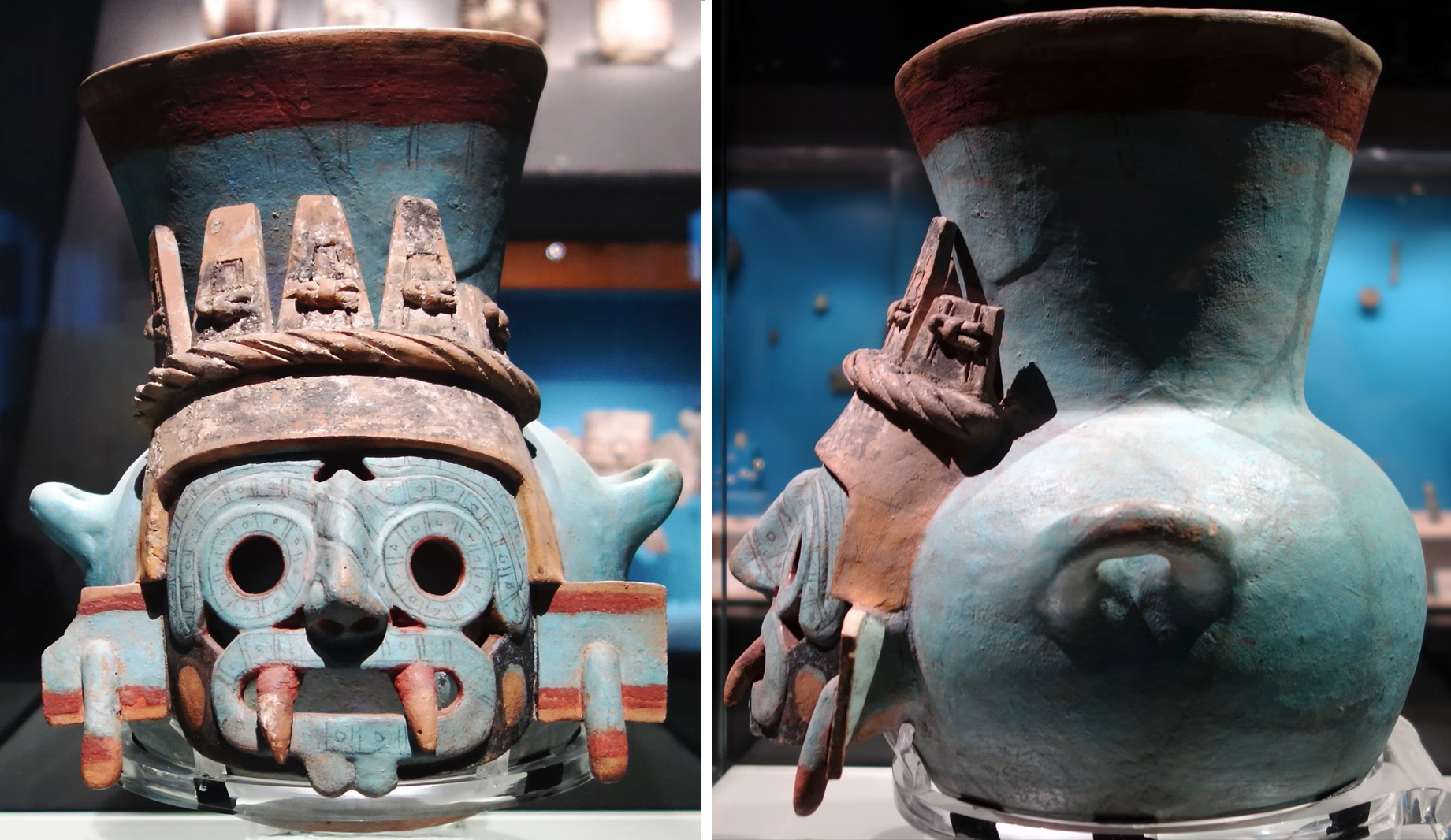 Просто посмотрите, какой он прекрасный! Голубой цвет широко использовался народами Мезоамерики и олицетворял драгоценность, воду, процветание. Этот кувшинчик был найден среди множества подношений в храме Тлалока на вершине Темпло Майор.