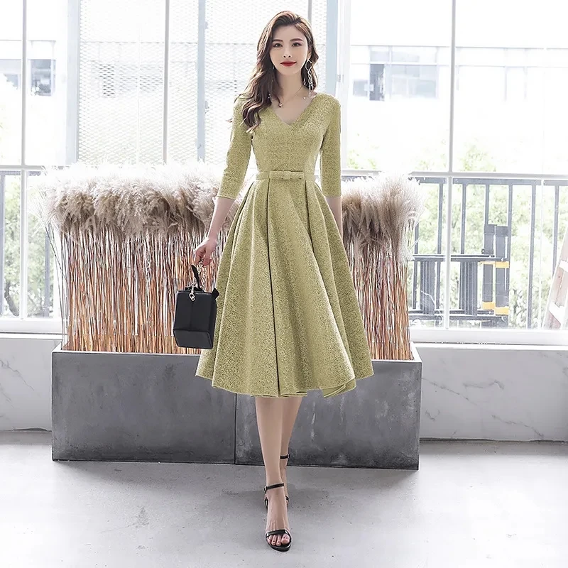 "V-Neck Prom Dresses Women Elegant Plus Size Reception Dress Spring Fall Three Quarter Bodycon Dress Lady Office Work Vestidos" * Buy Now Just For 28$