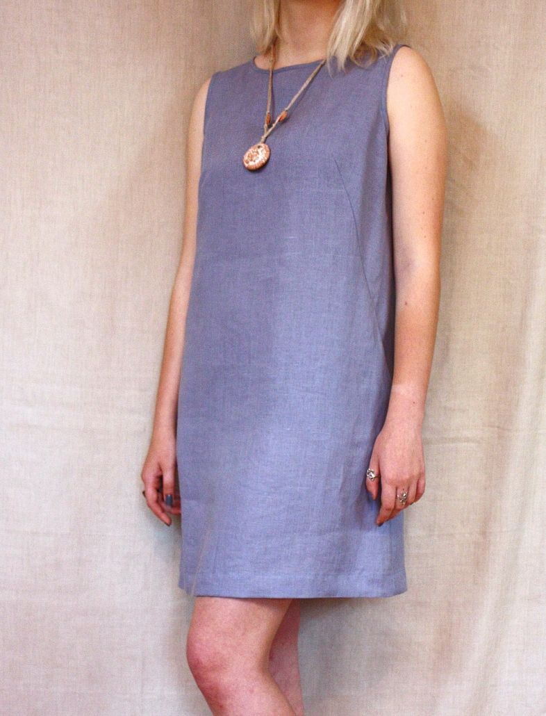 Женщина в сером платье без рукавов Иллюстрация ...