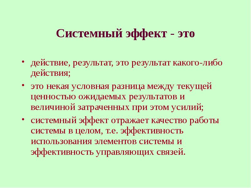 В чем суть системного эффекта