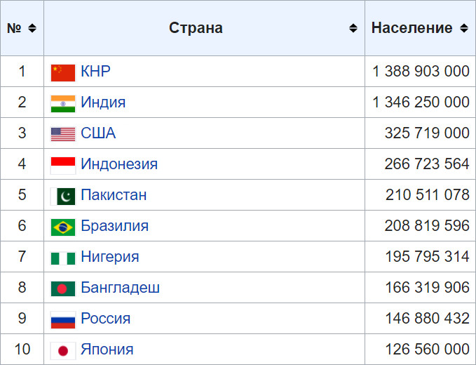Население стран на 2017 г.