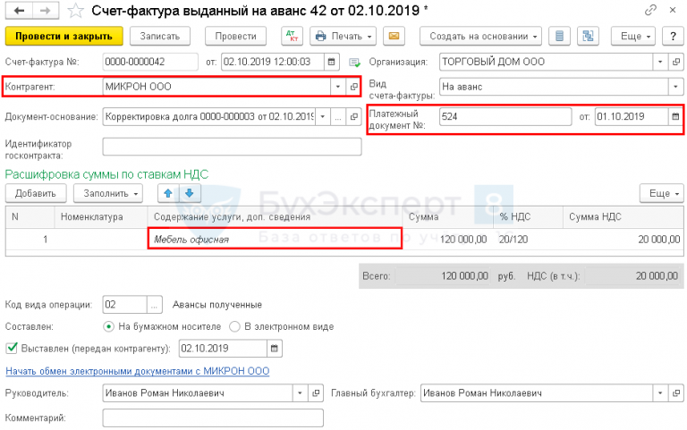 В данном документе нет аванса предоплаты