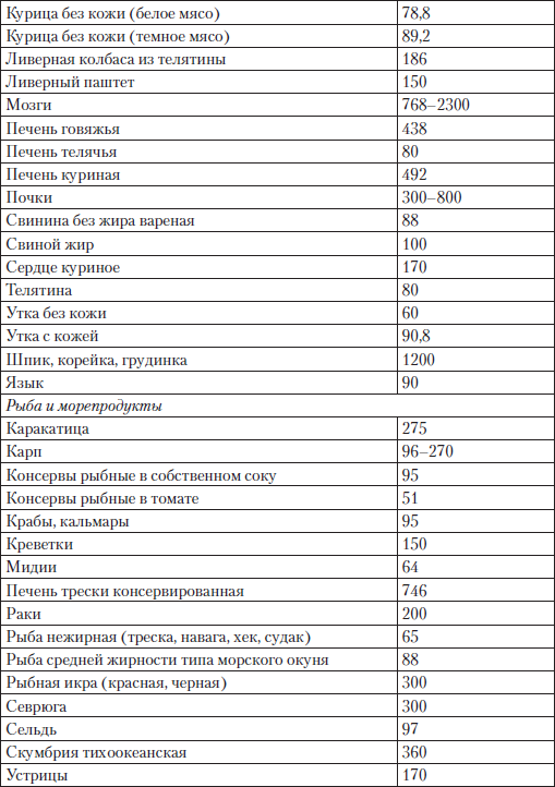 В каких продуктах содержится больше холестерина таблица