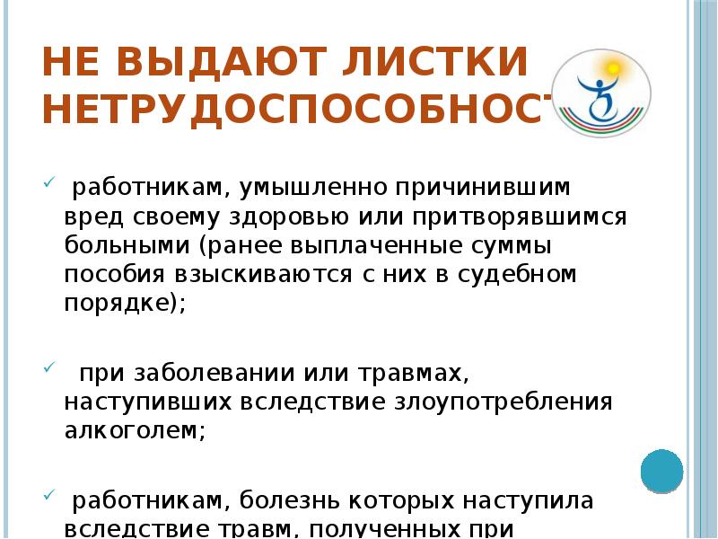 В каких случаях листок нетрудоспособности не выдается 117 фото