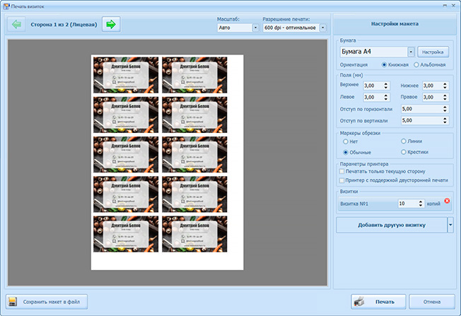 В какой программе сделать визитки