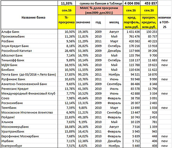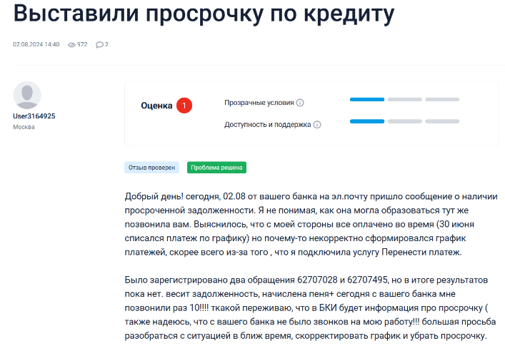 В каком банке была просрочка
