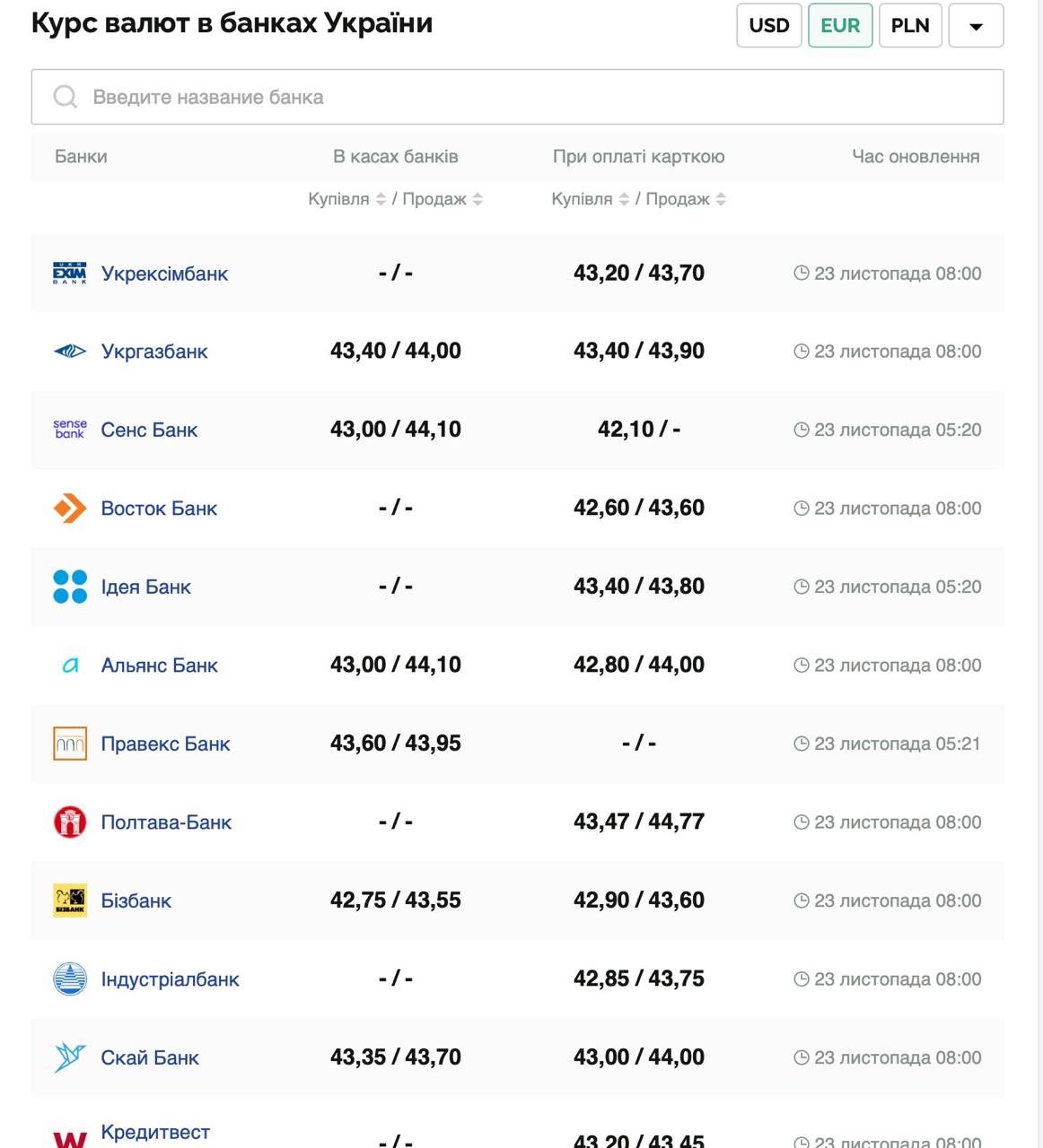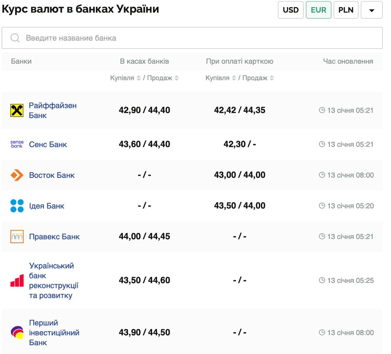 В каком банке есть евро