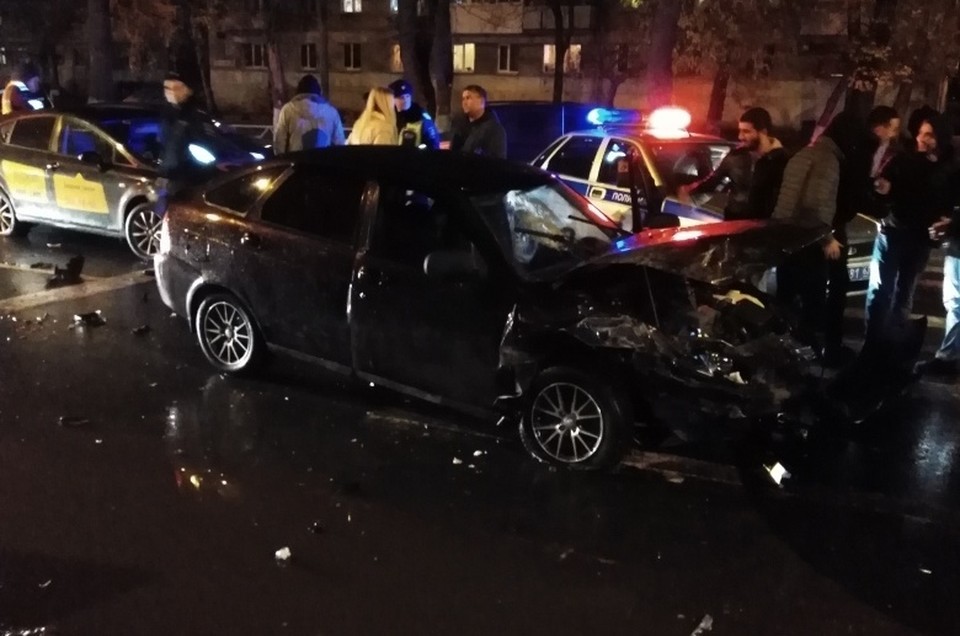 В машину врезались ночью