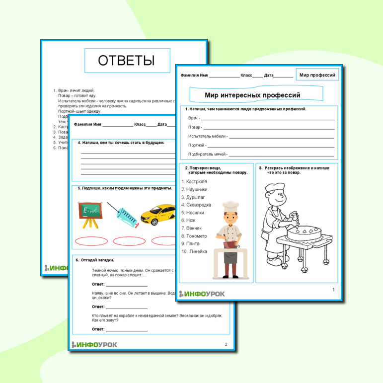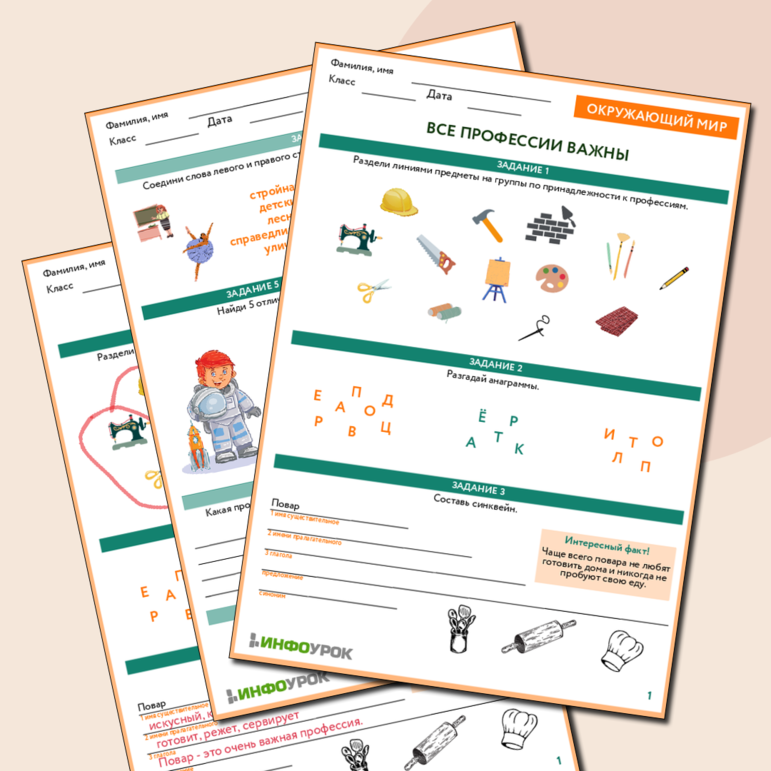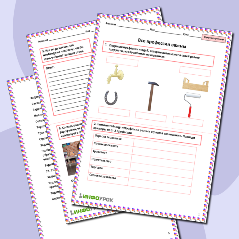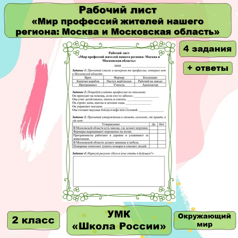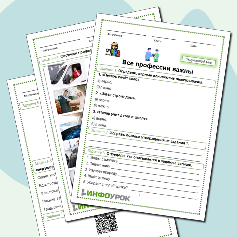 В мире профессий рабочий лист