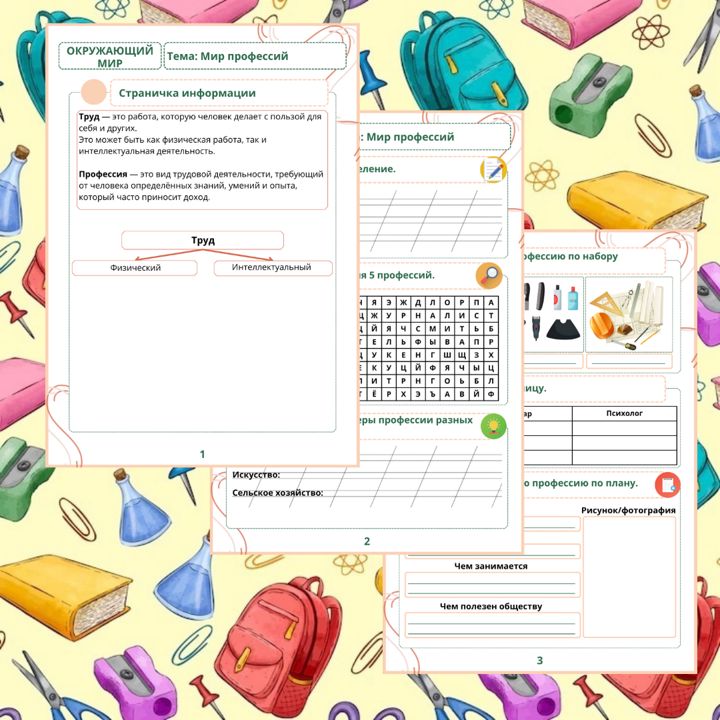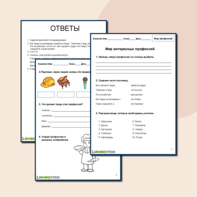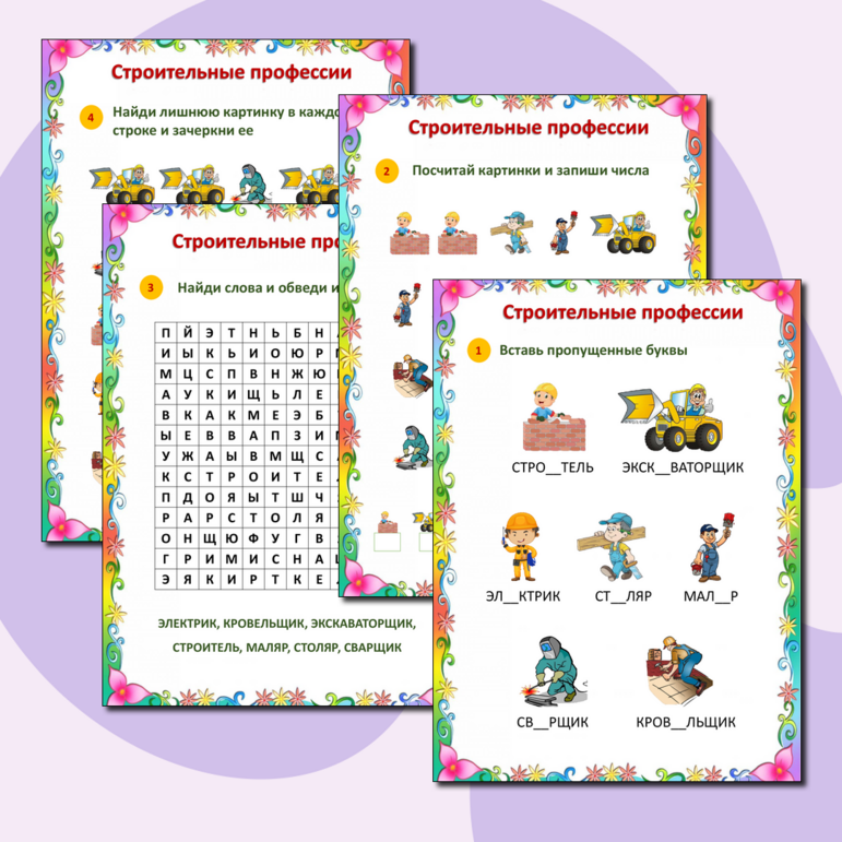 В мире профессий рабочий лист 127 фотографий