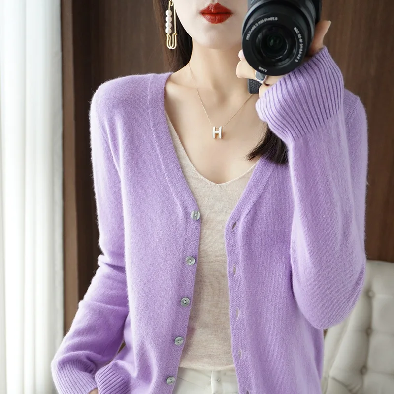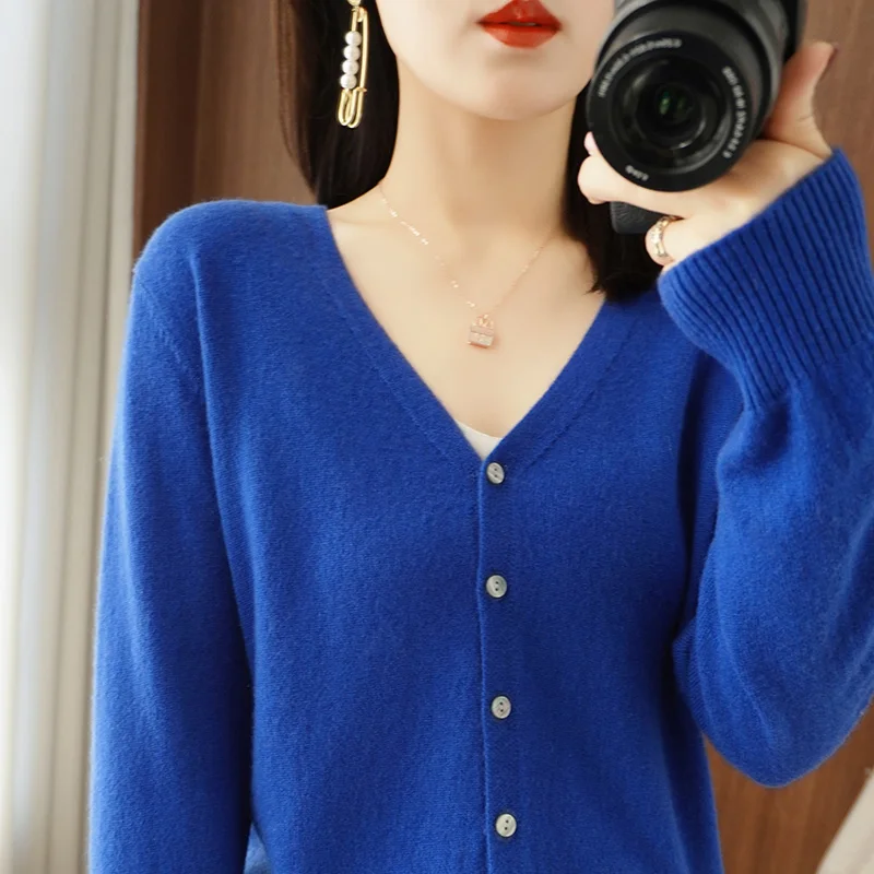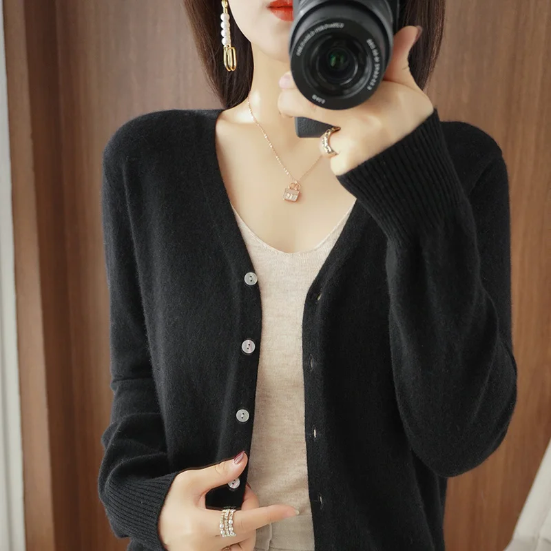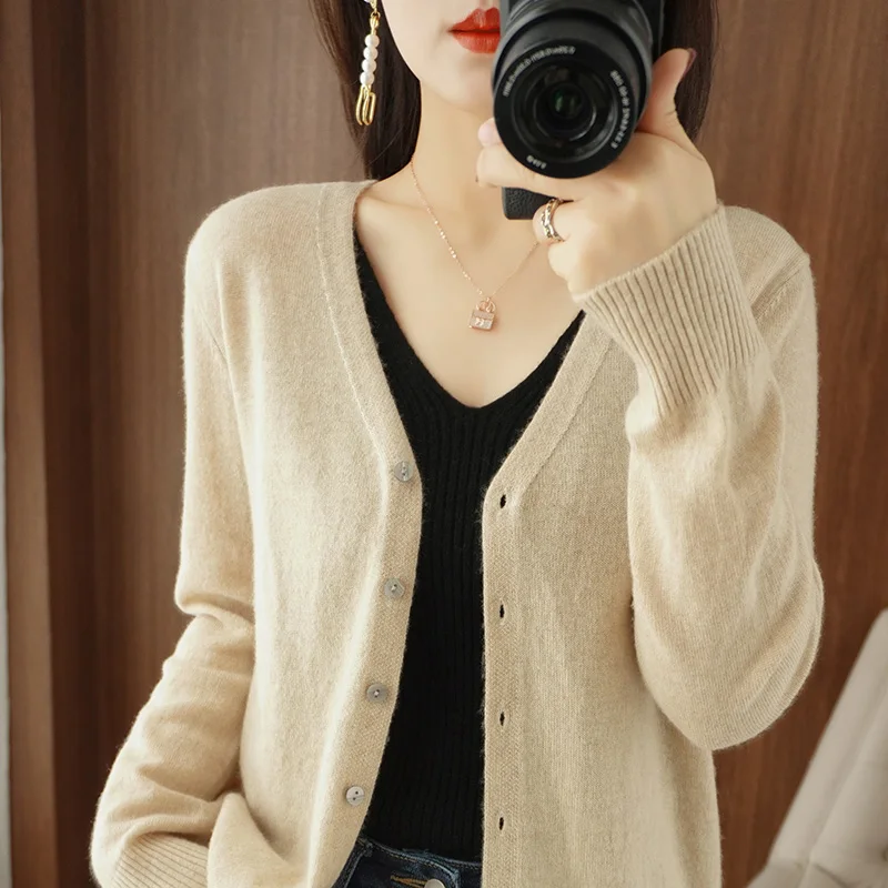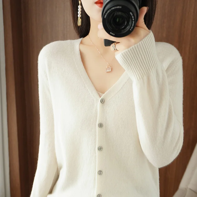 «V-neck Knit Cardigan Women's Autumn And Winter 2022 New Loose Long Sleeved Solid Color Everything Matching Basic Sweater Coat» по лучшей цене на рынке! Всего за 32$ (3040рублей)
