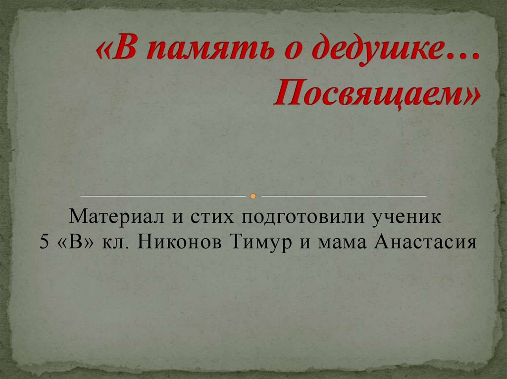 В память моему дедушке