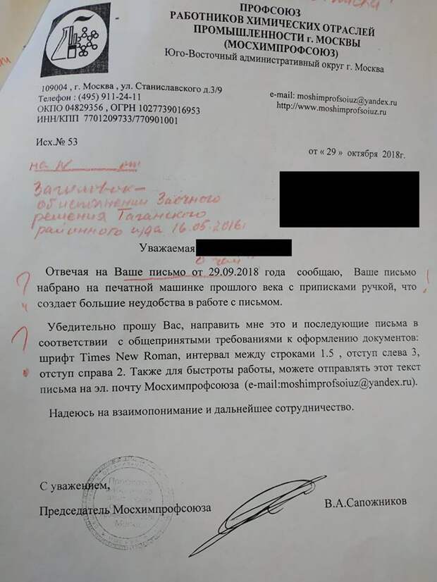 В письме сообщалось