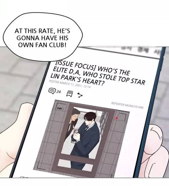 — Похоже, что Дохёна преследуют папарацци. Его фото, сделанное вчера, уже показали в новостях! А комментарии полны обсуждениями, какой же красивый и богатый окружной прокурор.