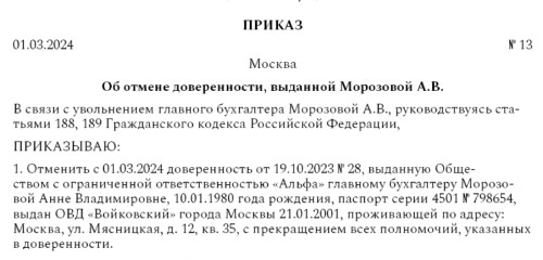 В соответствии с доверенностью выданной