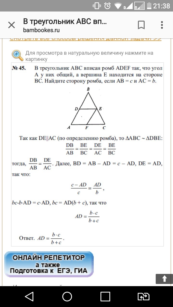 В треугольнике авс вписан параллелограмм 81 фото
