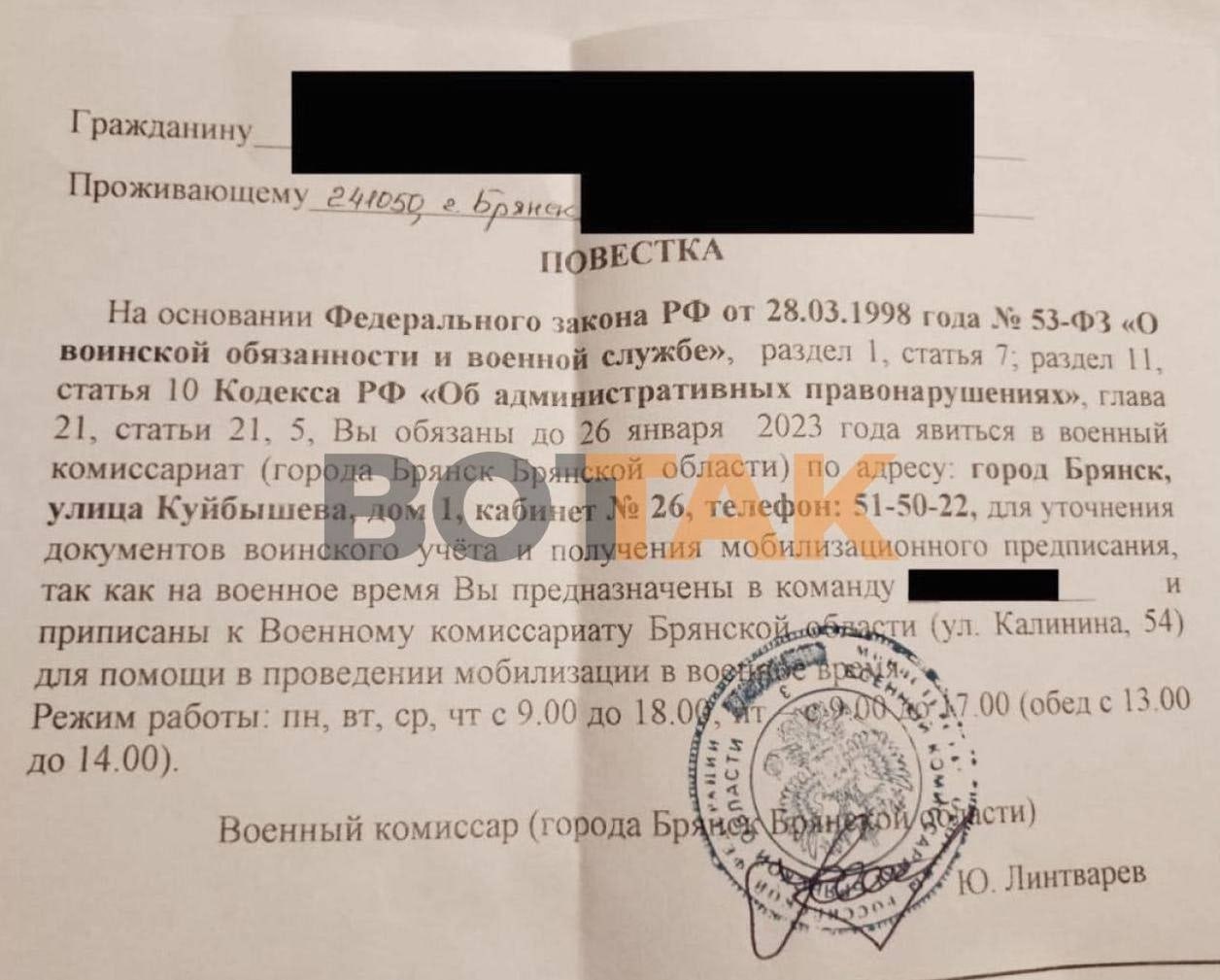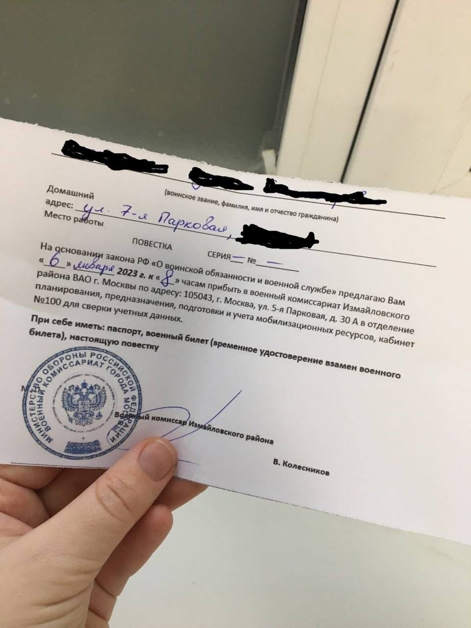 В ульяновске прислали мобилизационную повестку