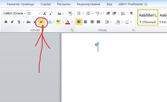 В ворде степень над числом