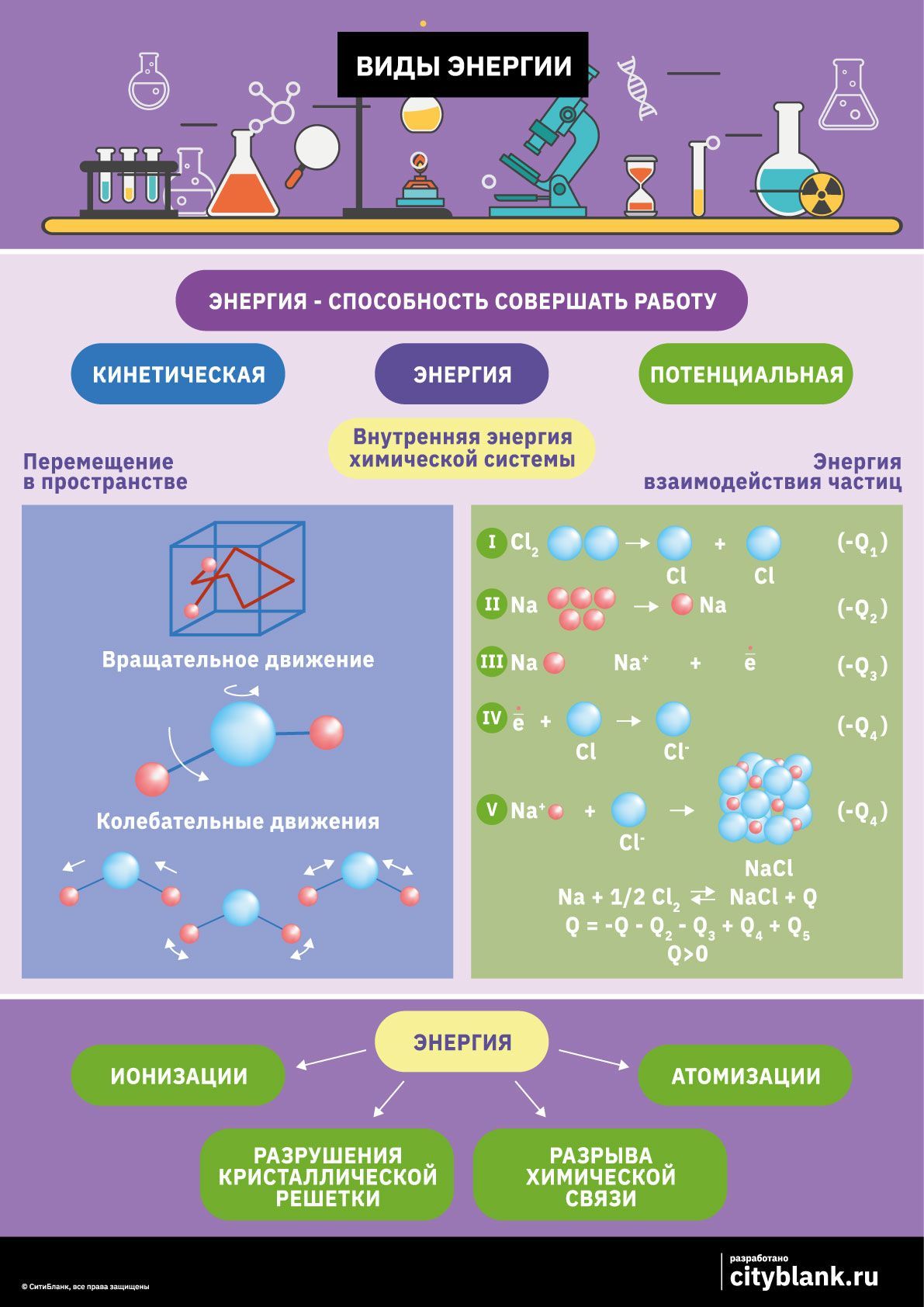 В закрытой системе сумма всех видов энергии