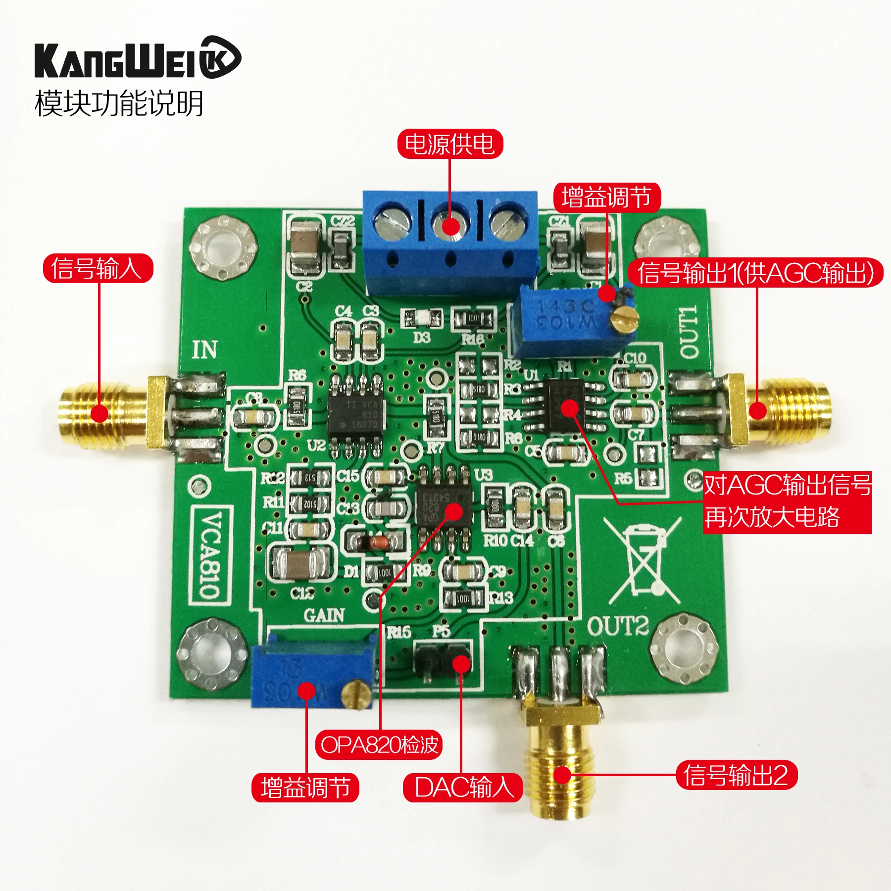 OcUJCjdWHere you can buy VCA810 AGC Module, Automatic Gain Amplifier, Wide Band, Voltage Control, Gain Amplification, Adjustable DA Programming with free delivery to your post office.
