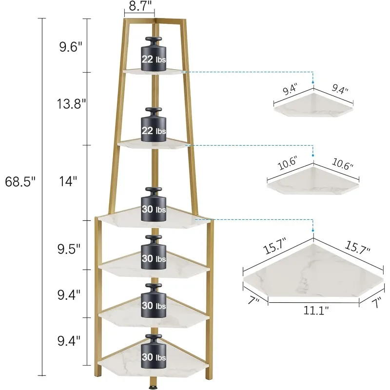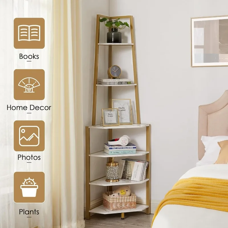 VECELO 6 Tier Corner Shelf, 69 Inch Industrial Bookshelf with Metal Frame, Multipurpose Storage Stand with Opening Display Rack - Купить с бесплатной доставкой
