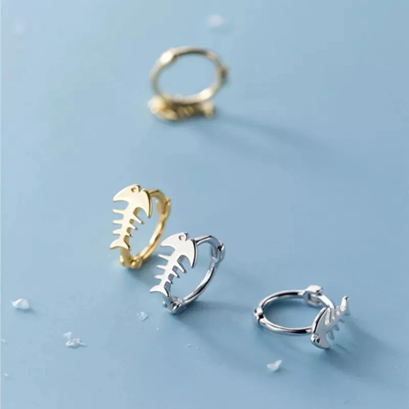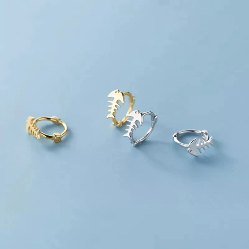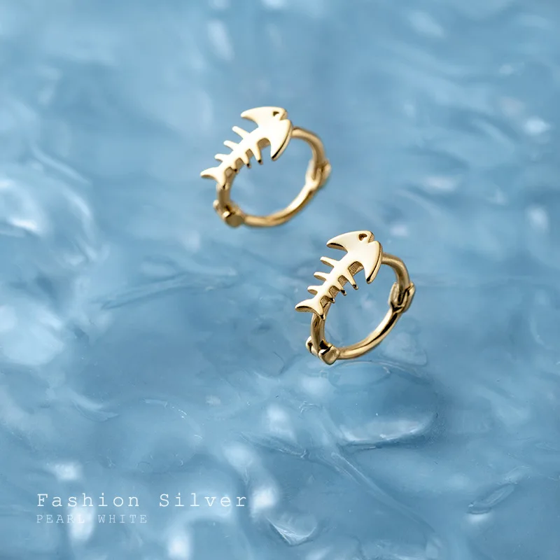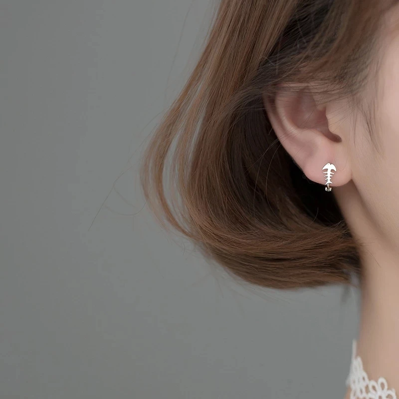 "VENTFILLE 925 Sterling Silver Ocean Creative Fish Bone Simple Small Hoop Earrings for Women Romantic Punk Party Jewelry" * Buy Now Just For 5$