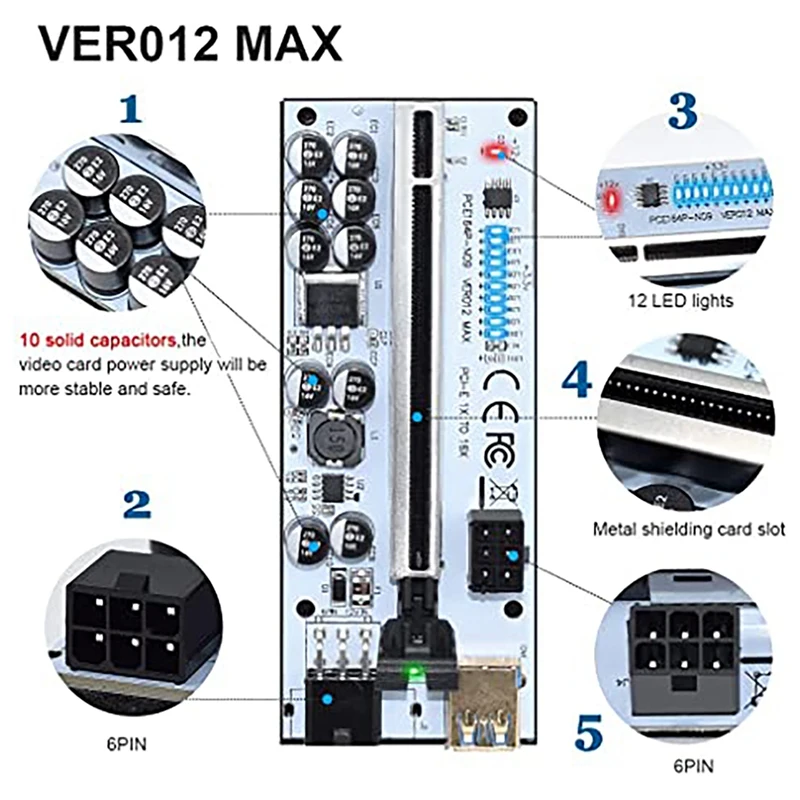 TyBosAlVДолго искали VER012 MAX PCI-E Riser Card PCI-E 1X To 16X Graphics Riser Card With 10 Solid Capacitors/LED Light For BTC Mining, но не могли найти? Предоставляем вашему вниманию VER012 MAX PCI-E Riser Card PCI-E 1X To 16X Graphics Riser Card With 10 Solid Capacitors/LED Light For BTC Mining по лучшей цене на рынке!