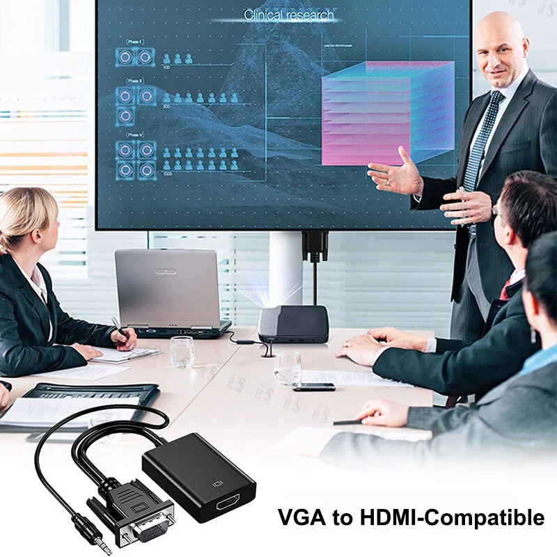 VGA To Hdmi-compatible Aux Cable Converter Adapter Extender With 3.5 Jack For PS4 Tv Box Pc Laptop To Monitor Projector Projetor - Купить с бесплатной доставкой