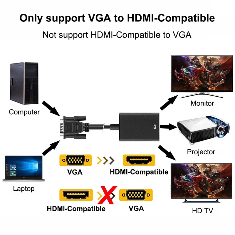 dziMoBxAЗдесь вы сможете купить VGA To Hdmi-compatible Aux Cable Converter Adapter Extender With 3.5 Jack For PS4 Tv Box Pc Laptop To Monitor Projector Projetor с бесплатной доставкой до вашего почтового отделения.