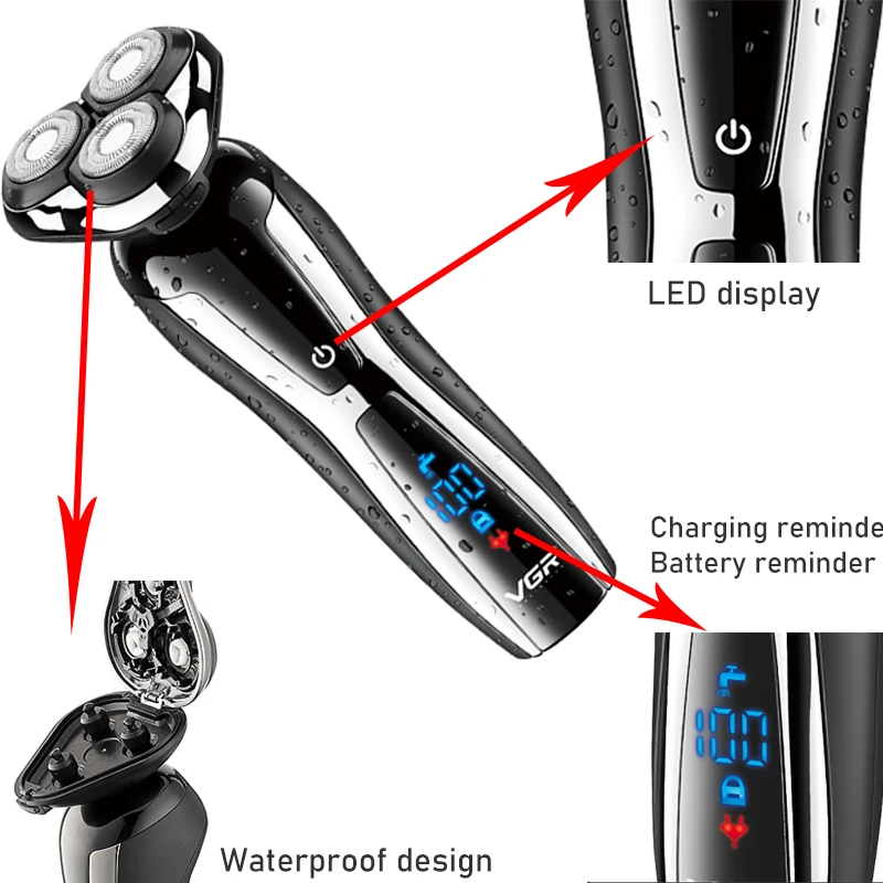 VGR Wet Dry Electric Shaver For Men Rotary Beard Electric Razor Shaving Machine Grooming Kit Rechargeable LCD Display - Купить с бесплатной доставкой