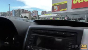 Mature a gros seins va sucer en voiture